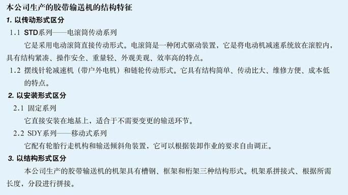 波狀擋邊帶式輸送機具有通用帶式輸送機結(jié)構(gòu)簡單、運行可靠、維修方便等優(yōu)點,且有可大傾角輸送、結(jié)構(gòu)緊湊、占地少等特點,因而是大傾角(甚至垂直)輸送的理想設備。